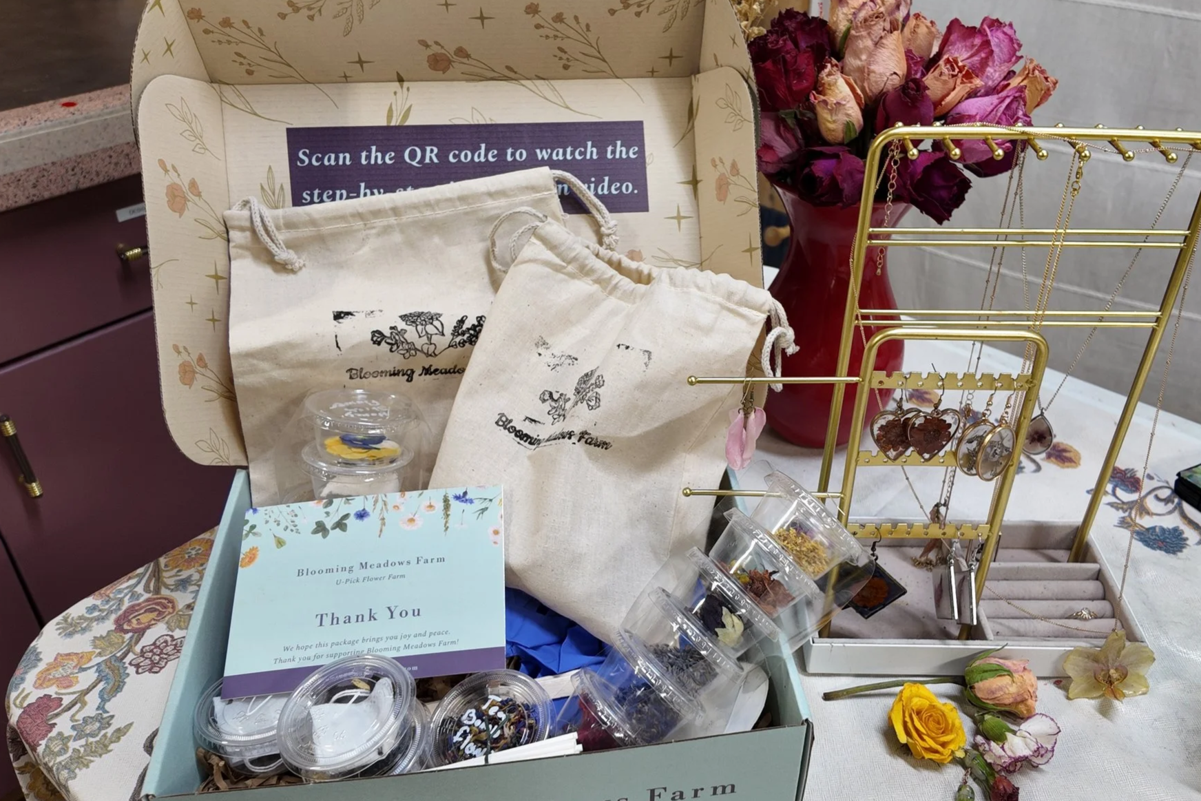 Blooming Meadows Farm is a serene space where creativity, beauty, and nature converge. It was created for people who need a moment to slow down, breathe deep, and make something meaningful with their hands.